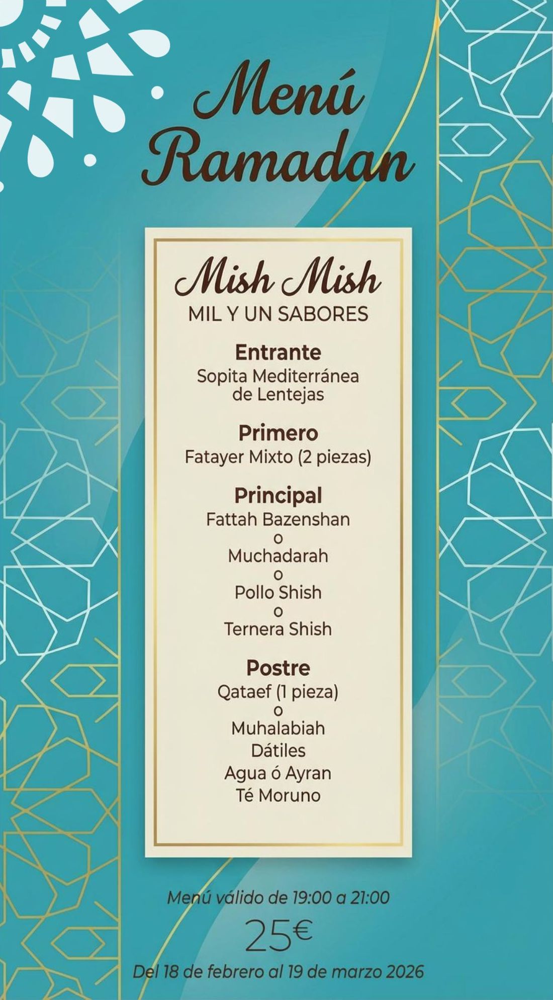 Menú Concept: De lunes a viernes mediodía, Max. 4 personas, no disponible festivos ni puentes de festivos, "No disponible en Semana Santa desde el 25 al 29 de Marzo, desde el 19 de Junio hasta el 16 de Septiembre, y desde el 8 Diciembre al 12 de Enero"